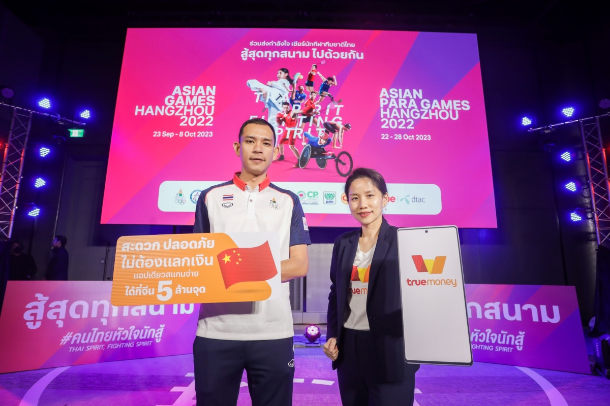 TrueMoney ผู้นำด้านการให้บริการทางการเงินแบบดิจิทัลชั้นนำในภูมิภาคเอเชียตะวันออกเฉียงใต้ ร่วมกับเครือเจริญโภคภัณฑ์ พร้อมด้วย คณะกรรมการโอลิมปิคแห่งประเทศไทย ในพระบรมราชูปถัมภ์ และคณะกรรมการพาราลิมปิคแห่งประเทศไทย ส่งเสริมทัพนักกีฬาไทย สู้ศึกกีฬา เอเชียนเกมส์ และเอเชียนพาราเกมส์ 2022 ที่เมืองหางโจว สาธารณรัฐประชาชนจีน ระหว่างวันที่ 23 กันยายน – 28 ตุลาคม 2566 โดยทรูมันนี่ ร่วมให้กำลังใจโดยมอบเงินในบัญชีทรูมันนี่ให้นักกีฬาเอเชียนเกมส์และเอเชียนพาราเกมส์สามารถใช้จ่ายได้สะดวกทั่วจีนด้วยทรูมันนี่ในทุกที่ที่มีสัญลักษณ์ Alipay