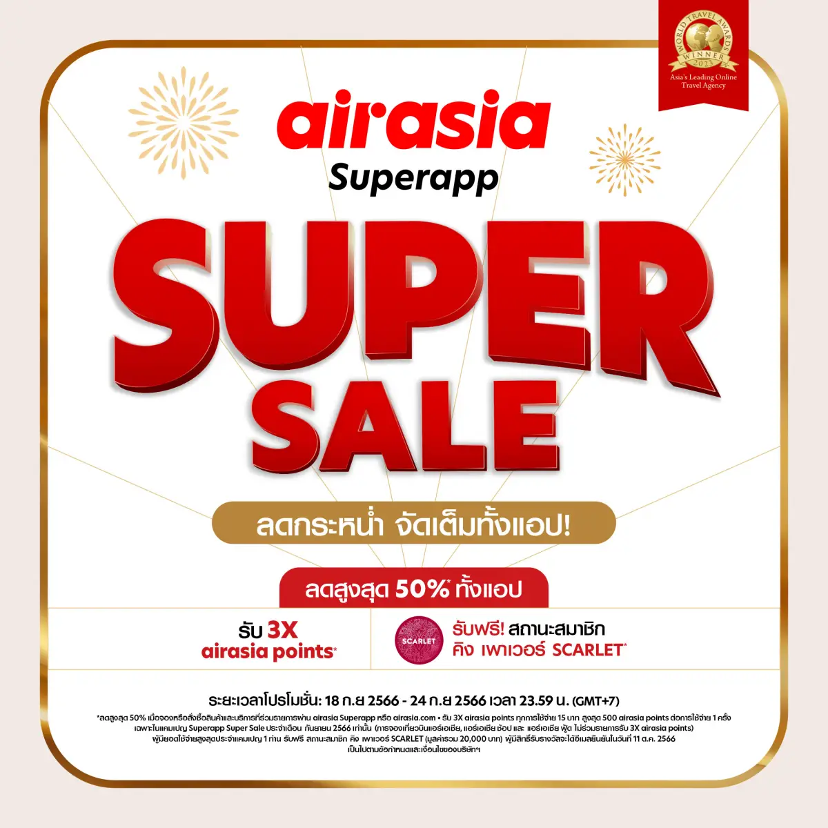 airasia Superapp Super Sale ลดกระหน่ำ จัดเต็มทั้งแอป ทั้งพัก-กิน-บิน-เที่ยว ลดสูงสุด 50% ตลอด 18 – 24 กันยายน 2566