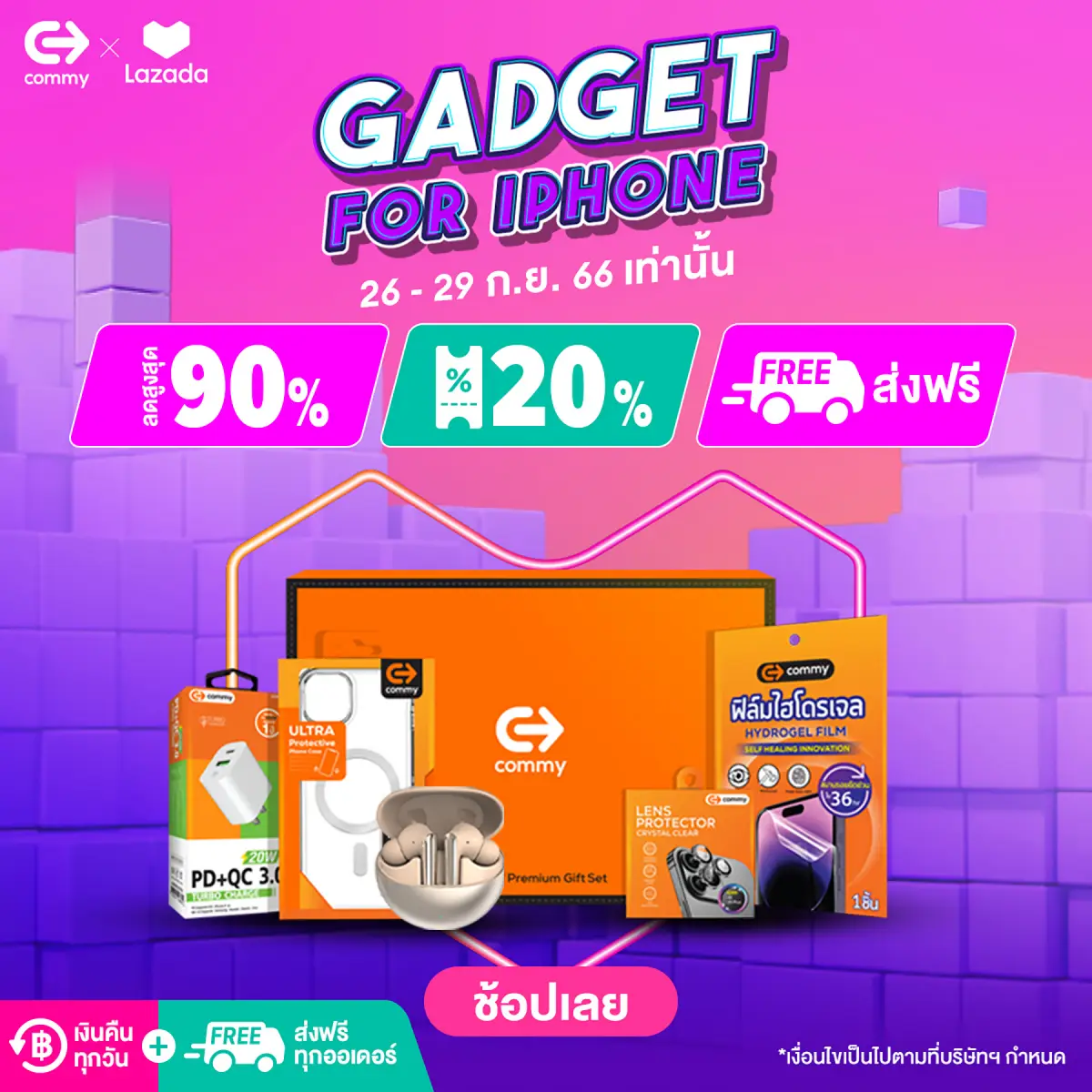 COMMY เอาใจสาวก Apple ร่วมแคมเปญ GADGET FOR IPHONE ลดจัดหนัก สูงสุดถึง 90% ตั้งแต่วันที่ 26 – 29 ก.ย. 66 นี้ บน Lazada เท่านั้น