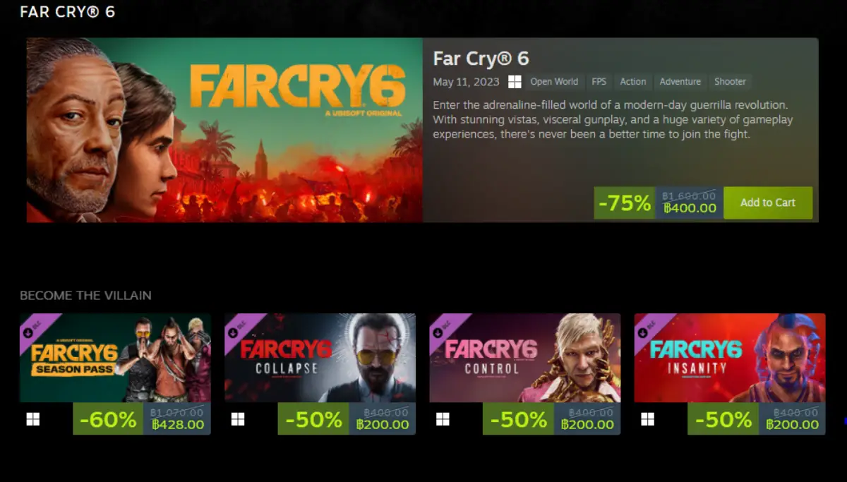เกม Far Cry Franchise Sale จาก Ubisoft ลดกระหน่ำ บน Steam สูงสุด 85% ถึงวันศุกร์ที่ 22 กันยายน 2023 เวลา 12:00 AM นี้
