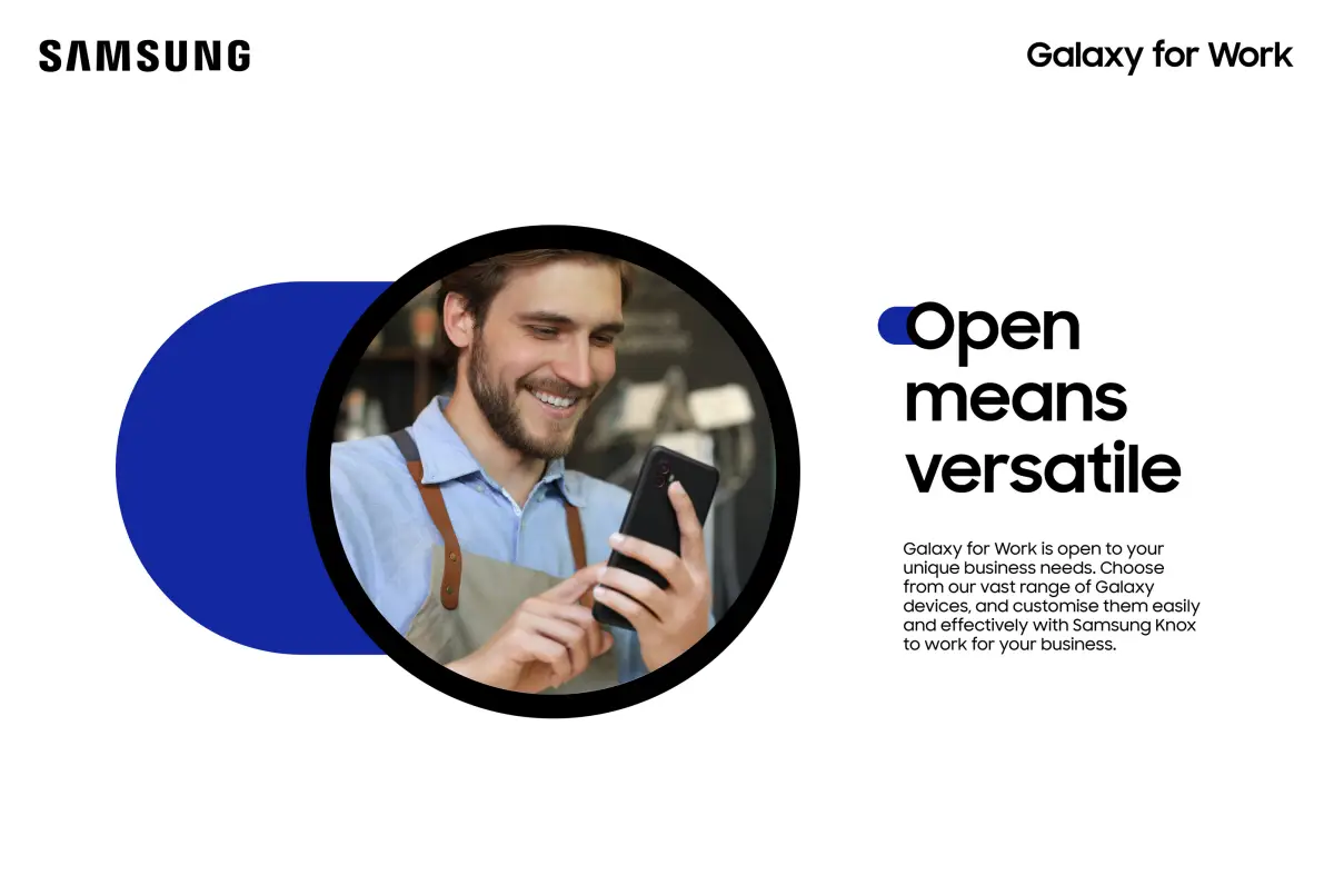 ด้วยความเชี่ยวชาญเชิงลึกในการรักษาความปลอดภัยมือถือ และการนำเทคโนโลยีดิจิทัลมาใช้ เพื่อปรับเปลี่ยนรูปแบบการทำงาน Samsung นำเสนอระบบนิเวศน์แบบเปิด โดยทำงานร่วมกันกับ Android ซึ่งเป็นแพลตฟอร์มแบบ Open Source ที่ได้รับการยอมรับและความไว้วางใจ เปิดกว้างให้ทั้งผู้บริการเครือข่าย ผู้ผลิต และนักพัฒนา สามารถนำไปต่อยอดพัฒนาไอเดียใหม่ ๆ ให้กลายเป็นจริงได้