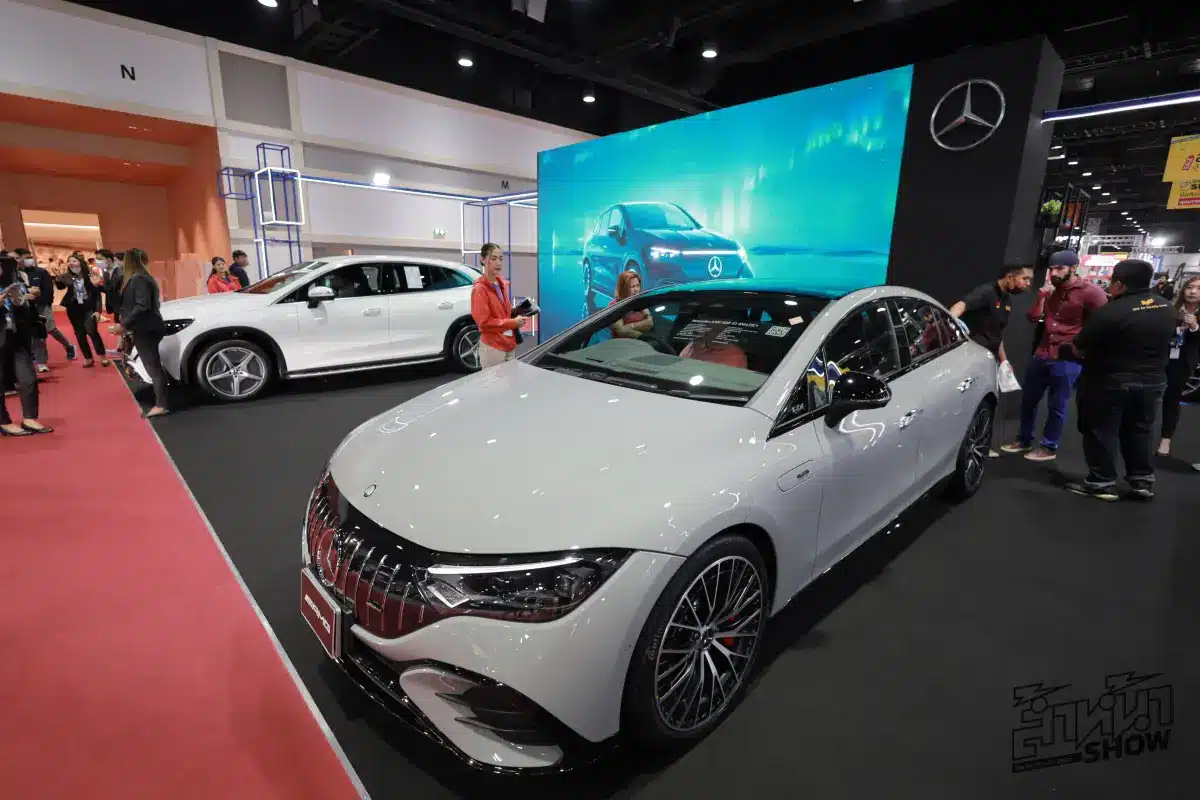 หันมาอีกฝั่งก็จะเจอกับ Mercedes-Benz ที่พา EQE SUV และ EQS มา ซึ่งความสดใหม่จะอยู่ที่ EQE SUV 350 AMG Line ที่เพิ่งเปิดตัวไปเมื่อสัปดาห์ก่อนนี่เอง
