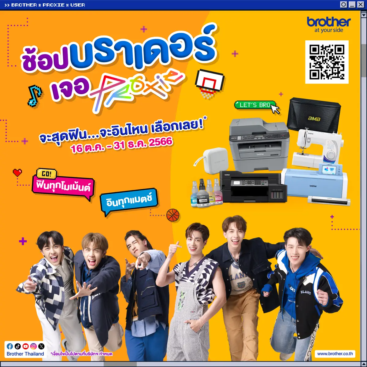 Brother จัด โปรโมชัน สุดฟิน “ช้อปบราเดอร์เจอ PROXIE” ลุ้นรับสิทธิ์ใกล้ชิดศิลปิน T-Pop บอยกรุ๊ป “PROXIE” เพียงช้อปสินค้าระหว่างวันที่ 16 ต.ค. – 31 ธ.ค.นี้