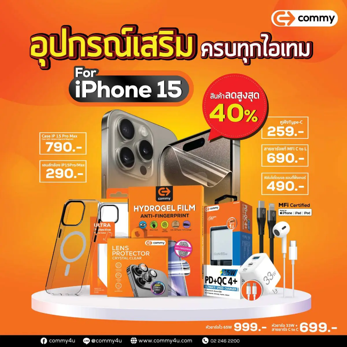 พบกับ โปรโมชันสุดค้ม ติดฟิล์มไฮโดรเจลเริ่มต้นเพียง 299.- และ อุปกรณ์เสริมสำหรับ iPhone15 พร้อมส่วนลดสูงสุดกว่า 40% ราคาเริ่มต้นเพียง 259 บาท รวมถึง สินค้า Clearance Sale ถูกที่สุดกับหน้ากากอนามัยกันฝุ่นเริ่มต้น 9 บาท เครื่องพ่นละอองน้ำ 99 บาท สายชาร์จไทป์-ซี 99 บาท และอีกมากมาย
