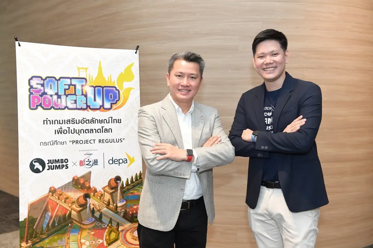 บริษัท จัมโบ้ จั๊มพส์ จำกัด ผู้ดำเนินธุรกิจในรูปแบบสตูดิโอพัฒนาเกมสัญชาติไทย ผนึก สำนักงานส่งเสริมเศรษฐกิจดิจิทัล (depa) เดินหน้าจัดงานเสวนา Soft-power Up ทำเกมเสริมอัตลักษณ์ไทยเพื่อไปบุกตลาดโลก กรณีศึกษา “Project REGULUS” พร้อมยกขบวนวิทยากรผู้เชี่ยวชาญร่วมมอบสาระความรู้ด้านอุตสาหกรรม เกมไทย ให้กับผู้ประกอบการและเยาวชนคนรุ่นใหม่ผ่าน PROJECT REGULUS ที่บริษัทจัมโบ้จั๊มพส์ พัฒนาร่วมกับพาร์ทเนอร์สำคัญอย่าง TV TOKYO เพื่อตอกย้ำจุดยืนในการส่งเสริมและพัฒนาศักยภาพบุคลากรในอุตสาหกรรมเกมไทย ให้ได้มาตรฐานเทียบเคียงกับผู้ประกอบการระดับสากล ณ ศูนย์การประชุมแห่งชาติสิริกิติ์