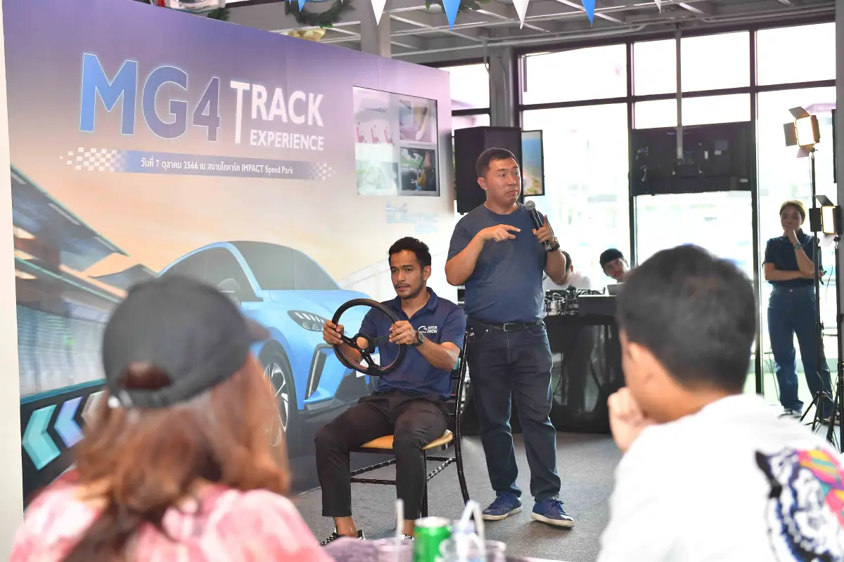 “ด้วยดีไซน์สปอร์ตโฉบเฉี่ยวของรถ NEW MG4 ELECTRIC ที่มาพร้อมกับสมรรถนะที่ดี กับจุดเด่นของรถที่มีระบบขับเคลื่อนล้อหลัง ฐานล้อกว้าง ทำให้เกาะถนนได้ดี เข้าโค้งได้อย่างเฉียบคม ช่วงล่างอิสระ 4 ล้อ แบบ 5-LINK SUSPENSION ถือเป็นอีวีที่ขับสนุกและเร้าใจ มาพร้อมกับระบบความปลอดภัยที่ครอบคลุมสำหรับการขับขี่ กิจกรรมในครั้งนี้ ถือเป็นครั้งแรกที่ได้เอารถคันโปรดจากที่ใช้ขับบนท้องถนนมารีดสมรรถนะแบบเต็ม ๆ บนสนาม ถือเป็นการเพิ่มประสบการณ์การขับขี่และการใช้รถคันนี้ให้ได้ดียิ่งขึ้น”