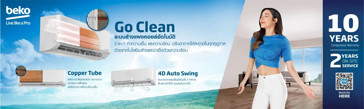 เพื่อให้บ้านเป็น safe zone ท่ามกลางภัยจาก ฝุ่น มลพิษ Beko (เบโค) ผู้นำตลาดเครื่องใช้ไฟฟ้าภายในบ้านจากทวีปยุโรป จึงได้พัฒนาเทคโนโลยีเครื่องปรับอากาศเพื่อยกระดับสุขภาพและคุณภาพชีวิตให้ทุกคนในบ้าน ชูจุดเด่น ‘GoClean’ ฟีเจอร์มอบ อากาศเย็น สะอาด ปลอดภัยจากเชื้อโรคและแบคทีเรียสะสม พร้อมสูดอากาศเย็นบริสุทธิ์อย่างเต็มปอด สบายทั้งกายและใจ เต็มที่กับทุกกิจกรรมในบ้านได้อย่างมั่นใจ