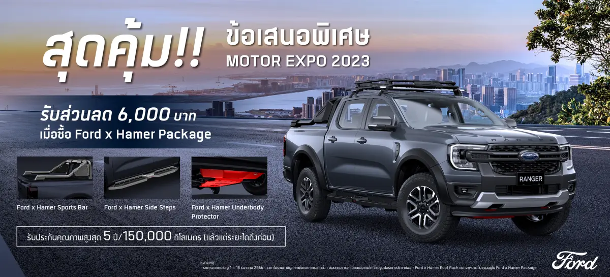 ฟอร์ดเอาใจลูกค้าหลากหลายกลุ่มด้วยการส่งโปรโมชันสุดเร้าใจมานำเสนอที่งานมอเตอร์ เอ็กซ์โป และที่ผู้จำหน่ายอย่างเป็นทางการทั่วประเทศ ตลอดระยะเวลางาน ลูกค้าสามารถเยี่ยมชมบูธฟอร์ด พร้อมพบกับข้อเสนอมากมายได้ดังนี้