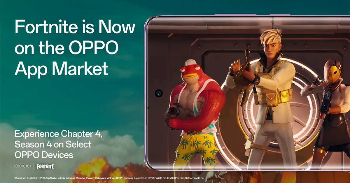 OPPO แบรนด์อุปกรณ์อัจฉริยะระดับโลกได้ประกาศเปิดตัว เกม Fortnite บน OPPO App Market โดยเป็นส่วนหนึ่งของความร่วมมือกับ Epic Games ผู้พัฒนาเกม ตั้งแต่วันที่ 10 ตุลาคม ผู้ใช้ OPPO ในอินโดนีเซีย ไทย ฟิลิปปินส์ มาเลเซีย เวียดนาม และอินเดีย จะสามารถเข้าถึง Fortnite ได้อย่างรวดเร็วและสะดวกสบายผ่าน OPPO App Market