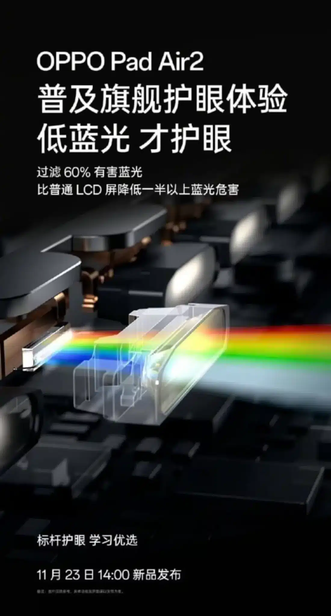 OPPO เตรียมเปิดตัว สมาร์ตโฟน ซีรีส์ Reno 11 และแท็บเล็ต OPPO Pad Air 2 ในวันที่ 23 พฤศจิกายน ที่ประเทศจีน โดยแบรนด์ได้แชร์ทีเซอร์บนเว็บ Weibo และเผยให้เห็น ข้อมูล บางส่วนของแท็บเล็ตที่กำลังจะเปิดตัวนี้