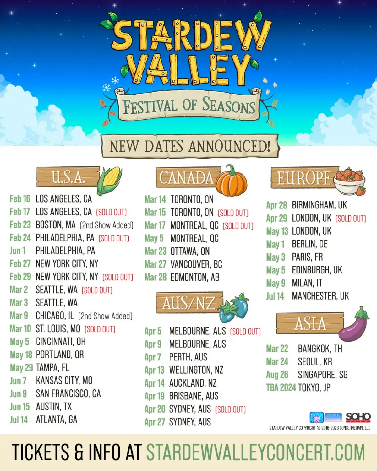 หลังจากการประกาศจัด คอนเสิร์ต Stardew Valley Concert “Festival Of Seasons” ไปเมื่อเดือนตุลาคม 2023 ที่ผ่านมา และมีการประกาศว่าจะจัดทัวร์มาที่ประเทศ ไทย ด้วย ตอนนี้มีอัปเดตวันแล้วนะ