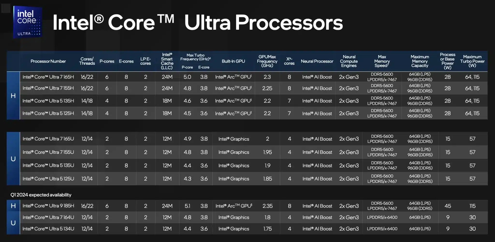 Intel Core Ultra เปิดตัว ครั้งแรก มาพร้อมกับ 8 รุ่นย่อย คือ