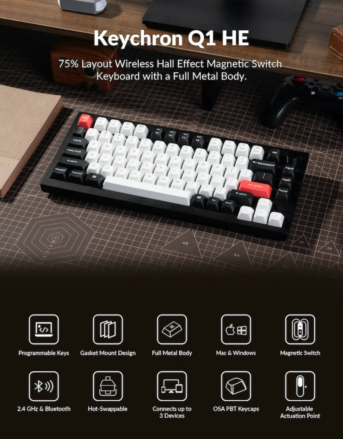 Keychron กลุ่มผู้เชี่ยวชาญด้านคีย์บอร์ดได้เปิดตัว Kickstarter สำหรับ Keychron Q1 HE คีย์บอร์ด ตัวแรกที่มีสวิตช์เอฟเฟกต์ Hall โดยขณะนี้กำลังเปิดระดมทุนที่ Kickstarter
