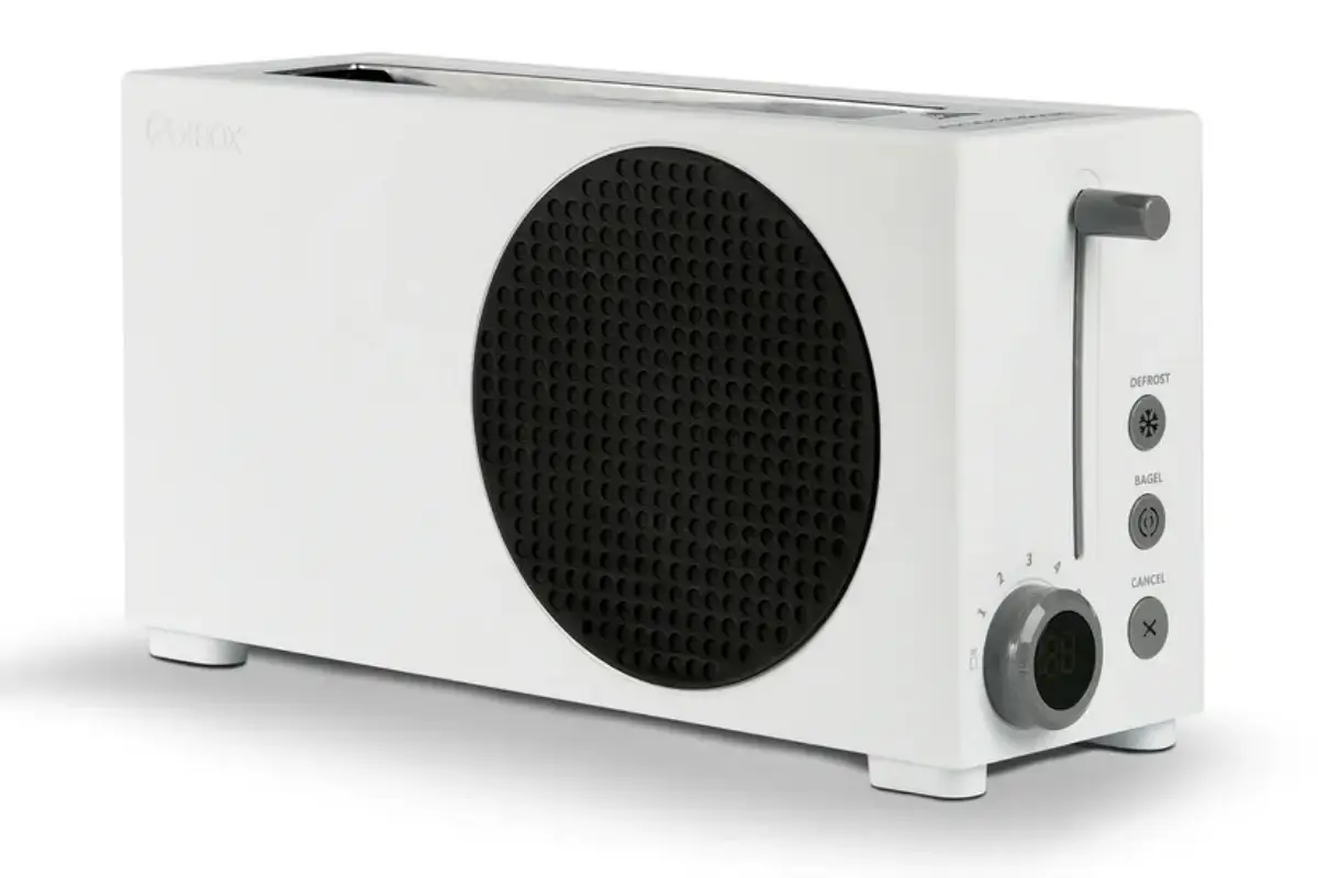 เครื่องปิ้งขนมปัง Xbox Series S มีการออกแบบให้หน้าตาเหมือนเครื่องคอนโซล แต่ฟังก์ชันการใช้งานยังคงมีพื้นฐานเหมือนเครื่องปิ้งขนมปังทั่วไป พร้อมเสริมคุณสมบัติอื่น ๆ เข้าไป เช่น ตัวเลือกเฉดสีสำหรับการปรับสีน้ำตาลของขนมปัง, ความจุ 2 ชิ้น (รวมถึงเบเกิล วาฟเฟิล และอื่น ๆ) และปุ่มละลายน้ำแข็ง