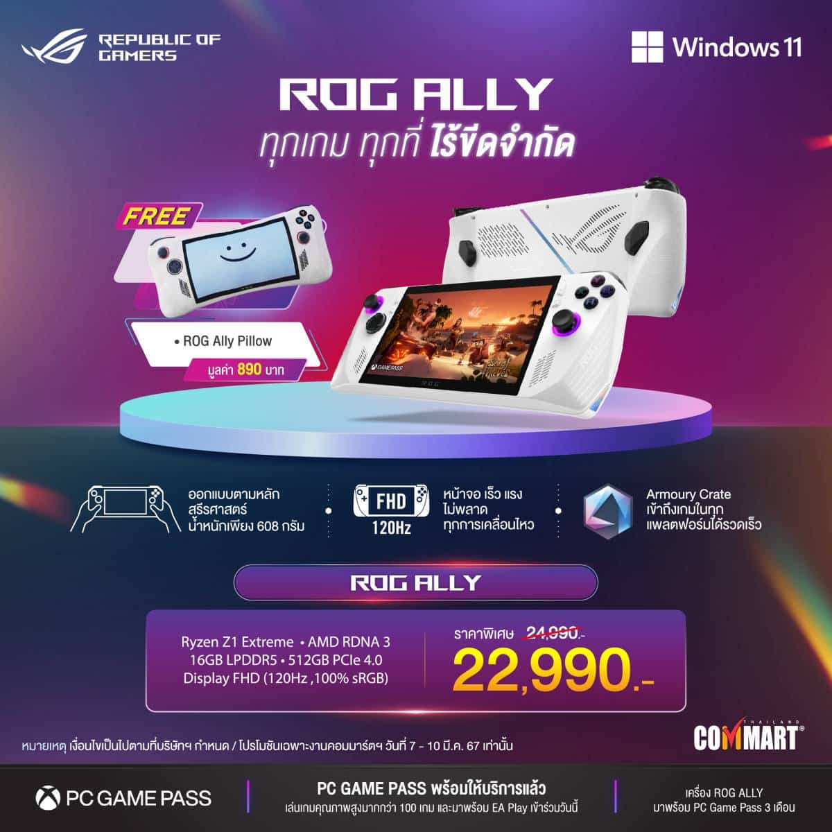 สาวก ROG Ally ห้ามพลาดกับโปรโมชันพิเศษ ให้คุณเป็นเจ้าของเกมมิ่งพีซีแบบพกพาแห่งปีได้ง่ายยิ่งขึ้นเฉพาะในงานคอมมาร์ตเท่านั้น รับส่วนลดทันที 2,000 บาท เหลือเพียง 22,990 บาท พิเศษ! รับเพิ่ม ROG Ally Pillow มูลค่า 890 บาท