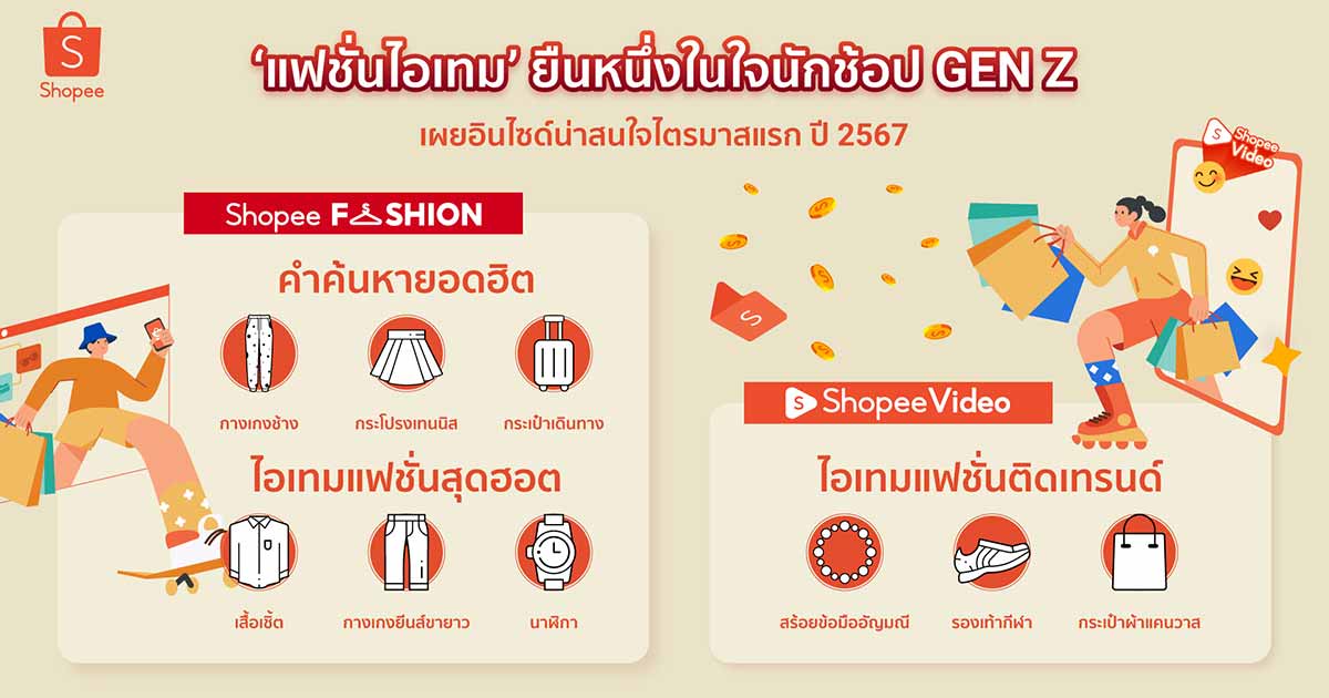 Shopee เผยนักช้อป Gen Z กว่า 79% เลือก shopping สินค้าแฟชั่น ผ่านแพลตฟอร์มอีคอมเมิร์ชมาแรงอย่างต่อเนื่องในช่วงแรกของไตรมาสแรกของปี 2567
