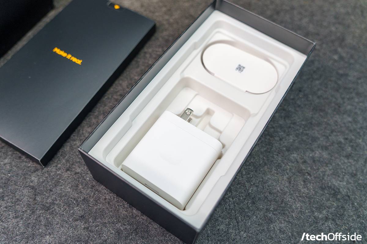 ด้านล่างสุดของกล่อง จะเป็นชุดอุปกรณ์สำหรับการชาร์จ ที่มีแถมมาให้ครบชุดไม่ต้องไปหาซื้อเพิ่ม โดยจะมีสาย USB-A to USB-C ความยาวประมาณ 1.5 เมตร และตัวอะแดปเตอร์ที่รองรับมาตรฐานการชาร์จเร็ว 120W SUPERVOOC ที่ชาร์จได้เร็วไวสุดๆ
