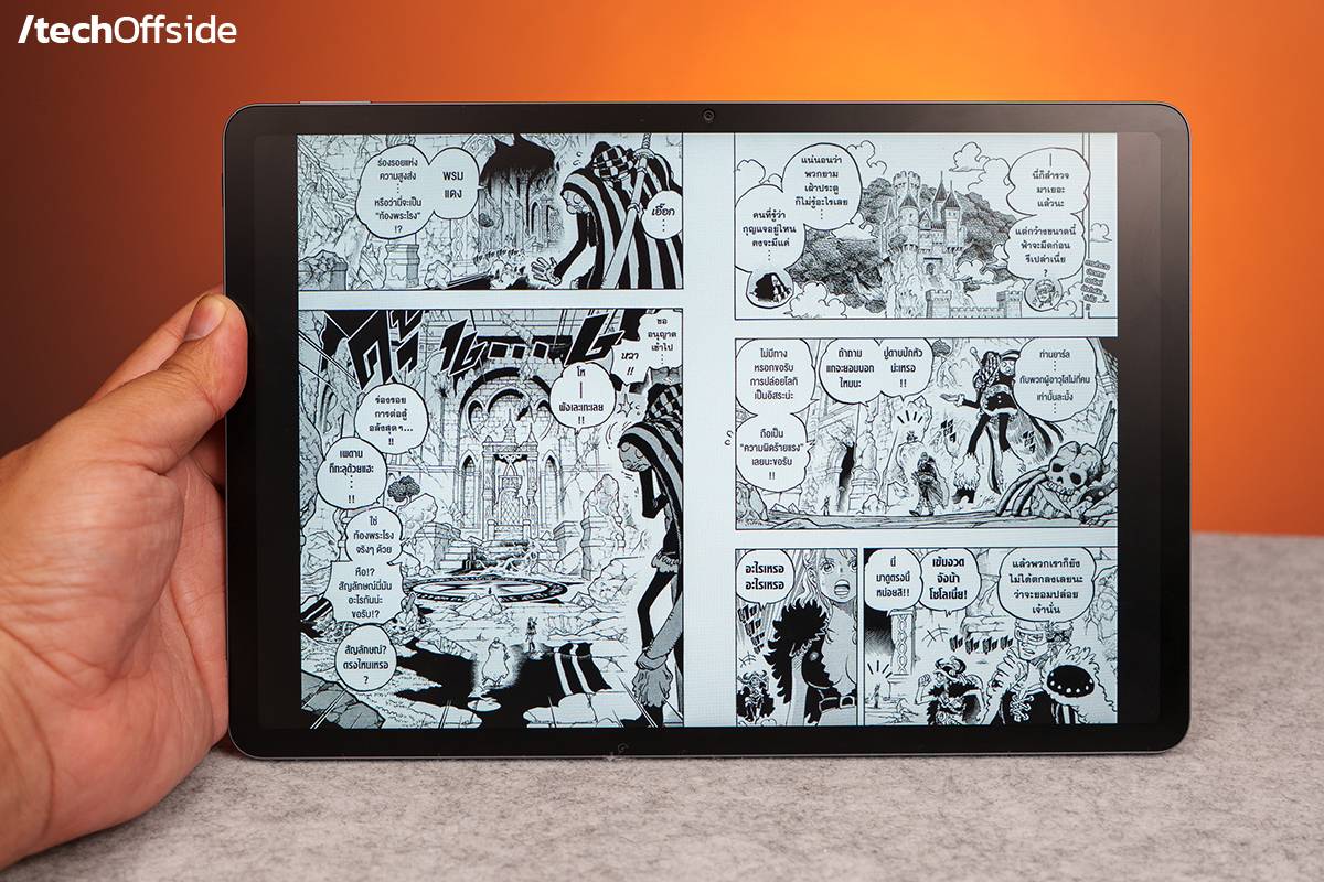 จุดเด่นที่ประทับใจมากคือหน้าจอ PaperMatte ที่ลดแสงสะท้อนได้ถึง 97% เรียกได้ว่าแทบจะไม่มีเงาสะท้อนบนหน้าจอเลยแม้แต่น้อย ทำให้ใช้งานได้สบายตาแม้ในที่แสงจ้า การอ่านเอกสารหรือทำงานต่อเนื่องหลายชั่วโมงไม่รู้สึกล้า และด้วยอัตรารีเฟรช 120Hz ทำให้ทุกการสัมผัสและเลื่อนหน้าจอลื่นไหลเป็นธรรมชาติ
