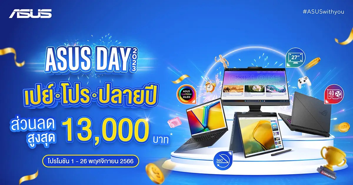 ASUS Day 2023 โปรโมชัน ช้อป โน้ตบุ๊ก ดีลดีที่สุดแห่งปี ส่วนลดสูงสุดกว่า 13,000 บาท9 พฤศจิกายน 20239 พฤศจิกายน 2023Feliss