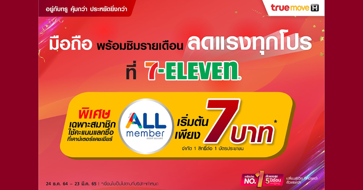 ซื้อมือถือใหม่ พร้อม ซิมรายเดือน TrueMove H เริ่มต้น 7 บาท ที่ 7-Eleven27 ธันวาคม 202127 ธันวาคม 2021Pedz